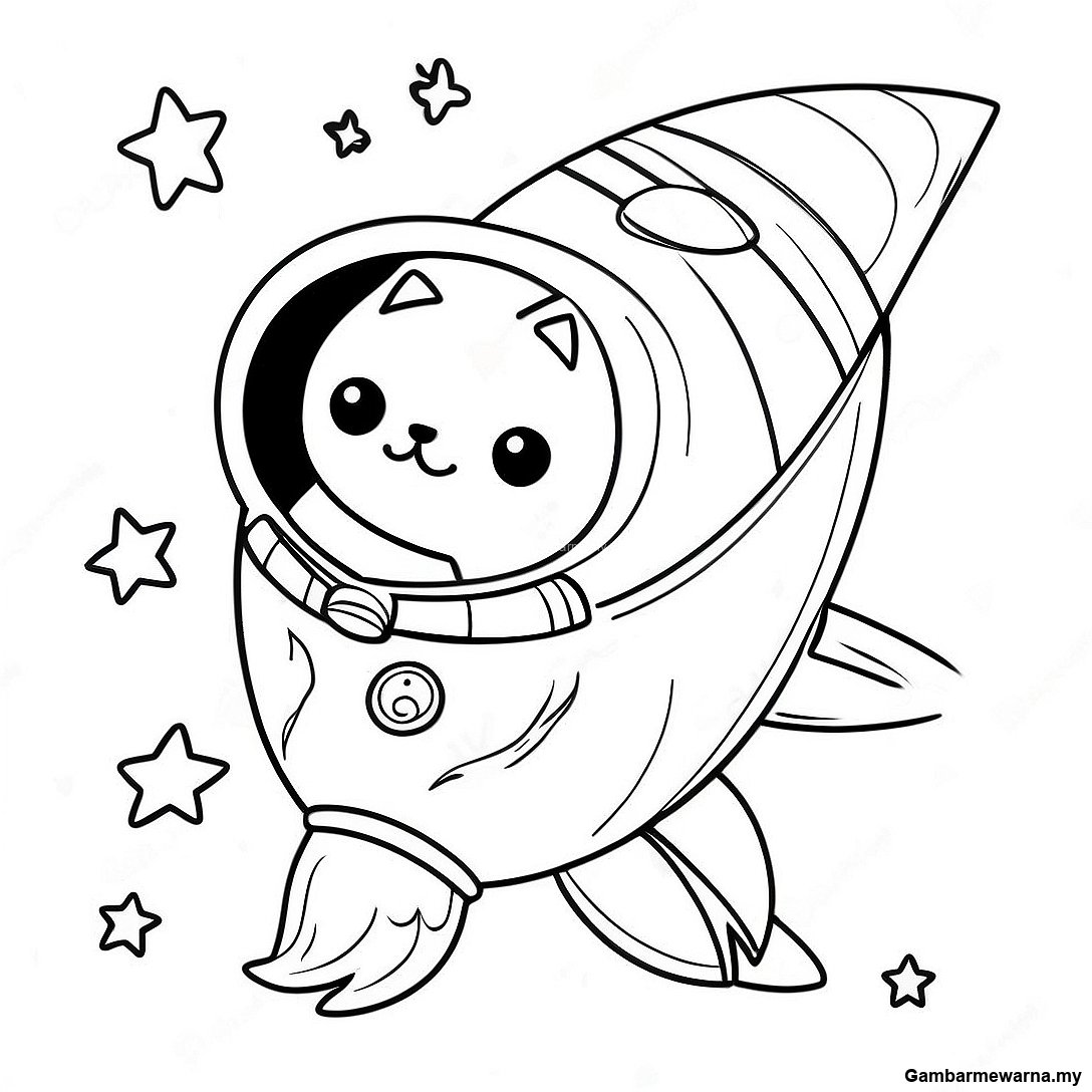 Halaman Mewarna Kucing Angkasa Bermain Dalam Roket 138849 70101