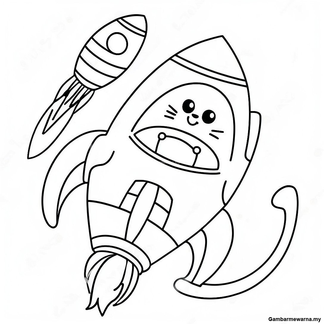 Halaman Mewarna Kucing Angkasa Bermain Dalam Roket 138849 70102