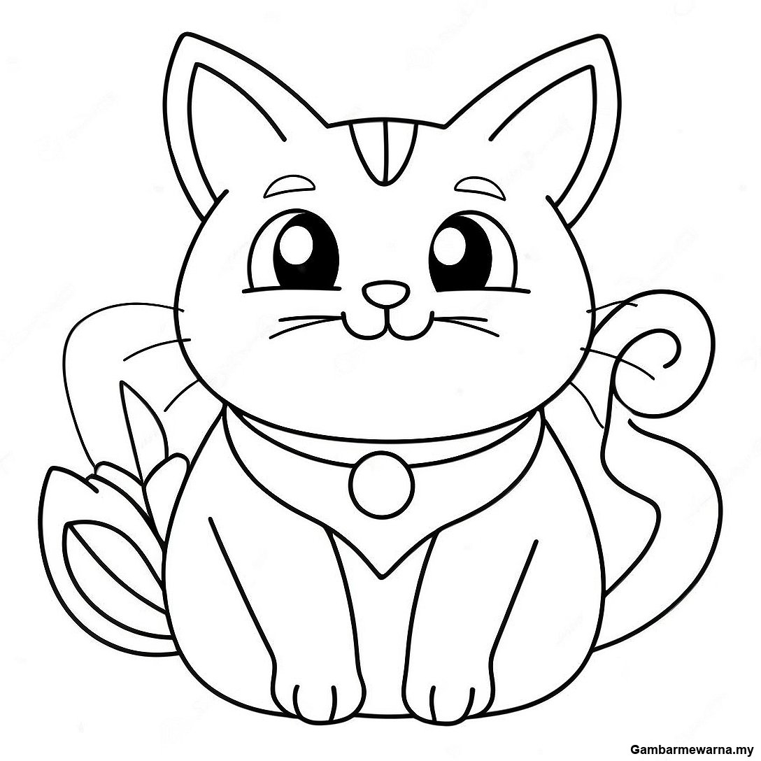 Comel Gambar Mewarna Kucing Kawaii