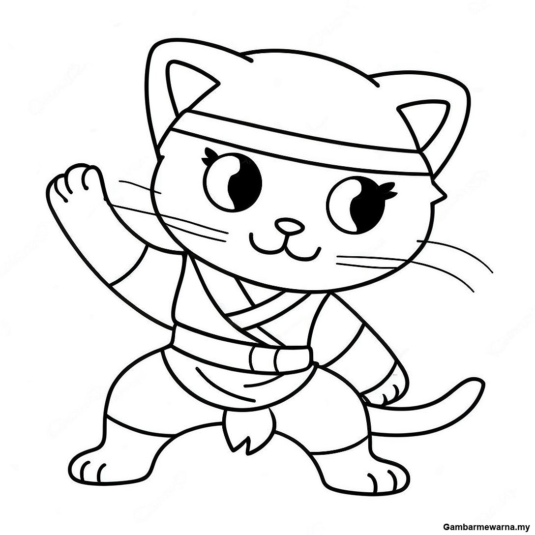 Halaman Mewarna Kucing Ninja Yang Senyap