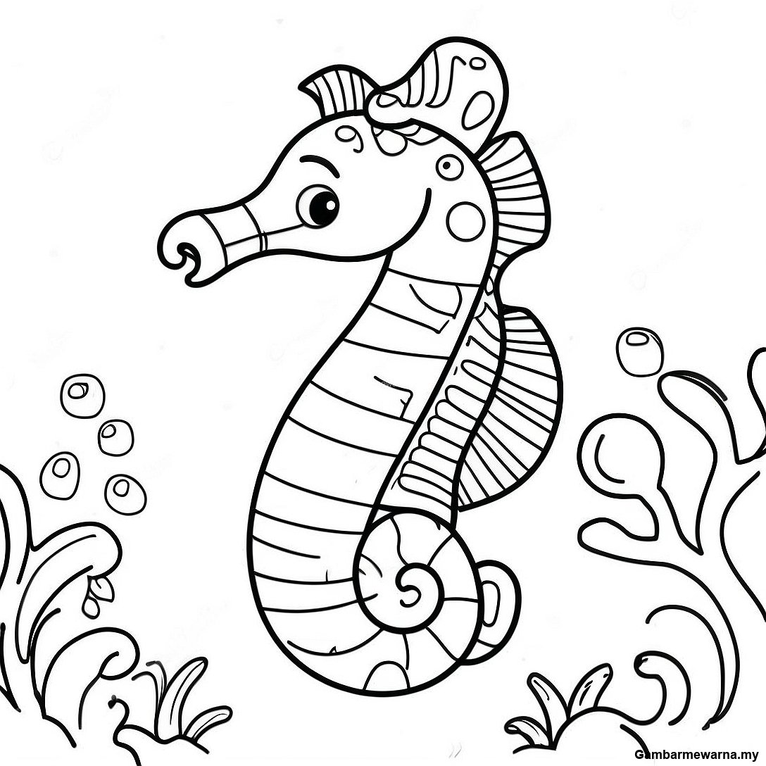 Halaman Mewarna Kuda Laut Ceria Dengan Karang 36140 7908