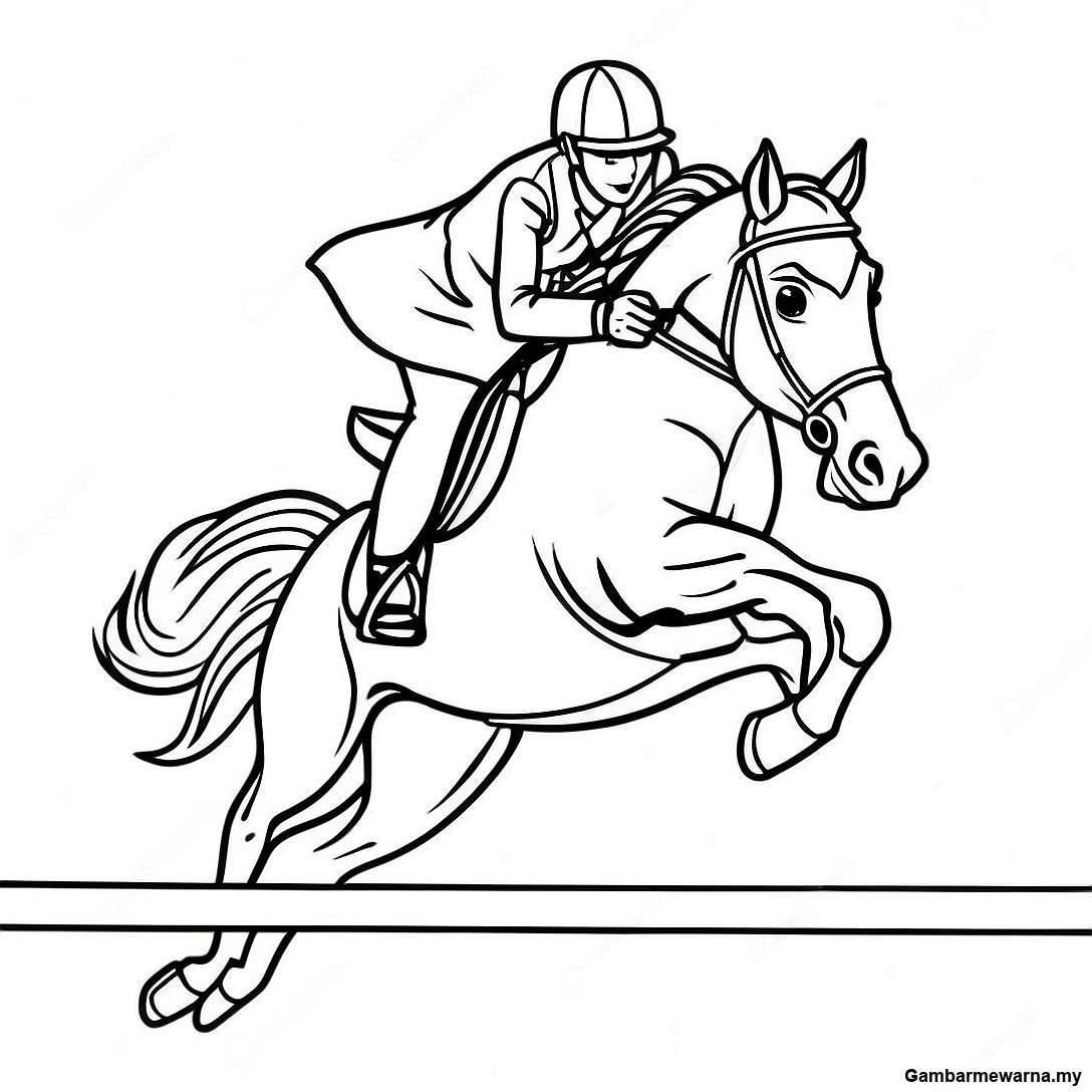 Muat turun PDF Boleh Cetak Halaman Mewarna Kuda Pertunjukan Melompat Yang Dinamik Di Udara