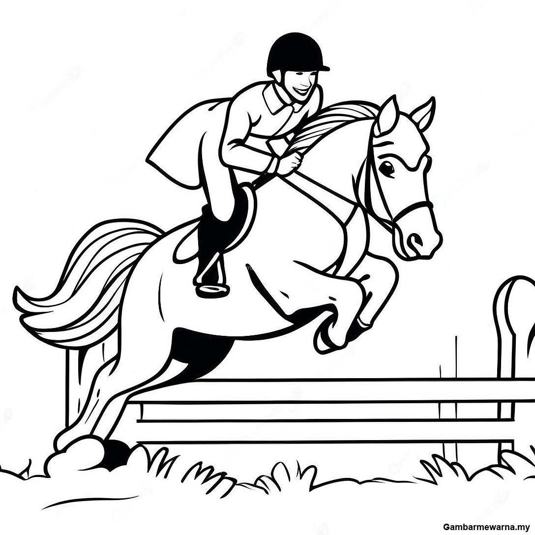 Muat turun PDF Boleh Cetak Halaman Mewarna Kuda Pertunjukan Melompat Yang Dinamik Di Udara