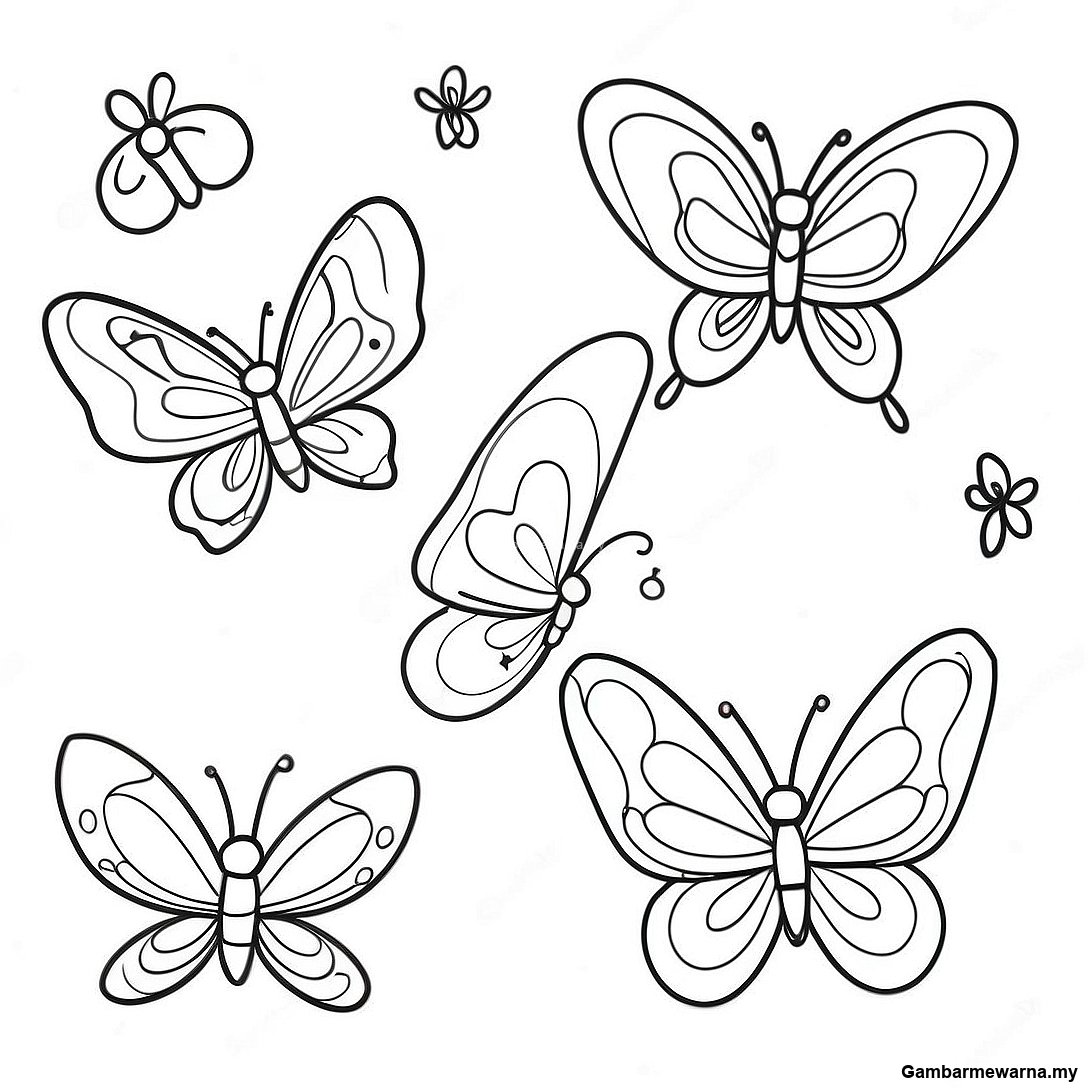 Halaman Mewarna Kupu Kupu Berwarna Warni Dalam Penerbangan 129505 62676