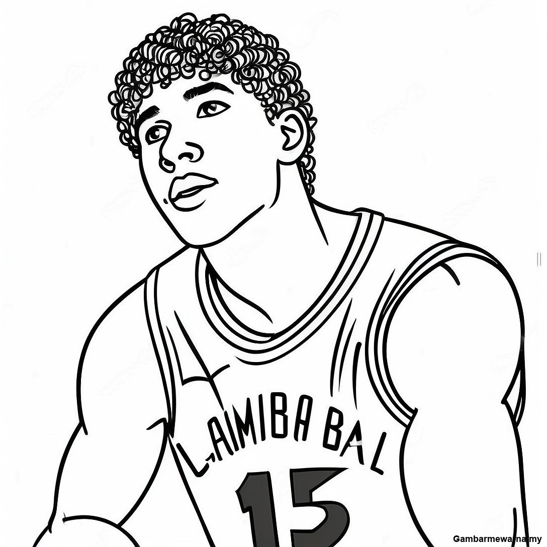 Halaman Mewarna Lamelo Ball Dengan Bola Keranjang