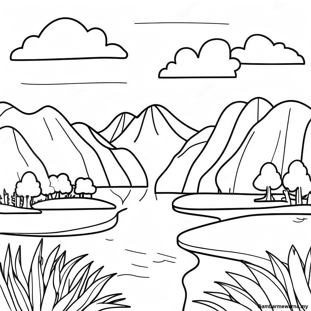 Halaman Mewarna Landskap Negara Yang Cantik 73012 16642