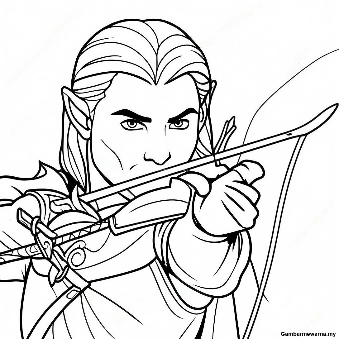 Muat turun PDF Boleh Cetak Halaman Mewarna Legolas, Pemanah Elf