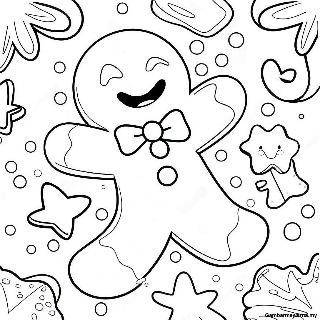 Muat turun PDF Boleh Cetak Halaman Mewarna Lelaki Roti Halia Dengan Hiasan Berwarna-Warni