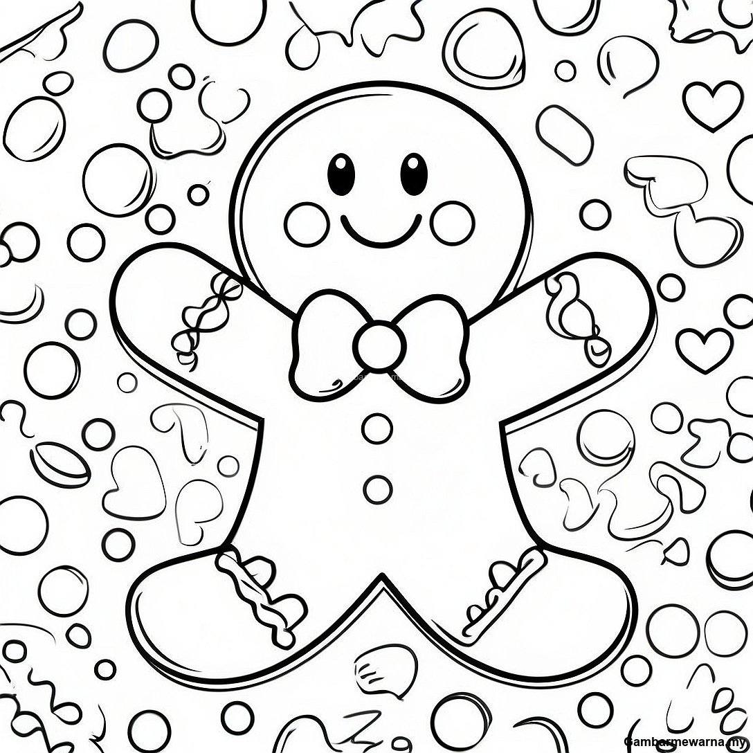 Muat turun PDF Boleh Cetak Halaman Mewarna Lelaki Roti Halia Dengan Hiasan Berwarna-Warni