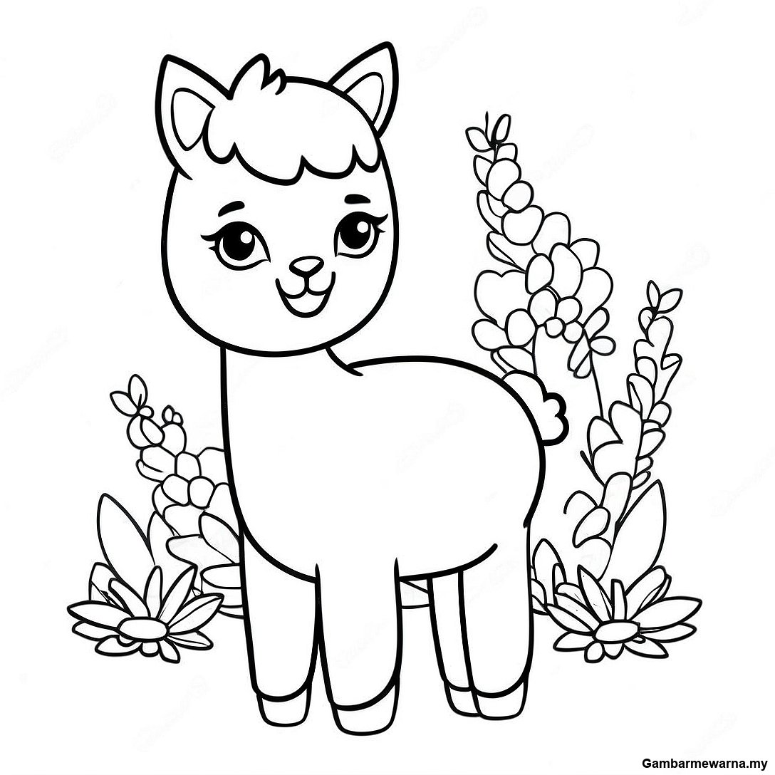 Halaman Mewarna Llama Bayi Yang Comel