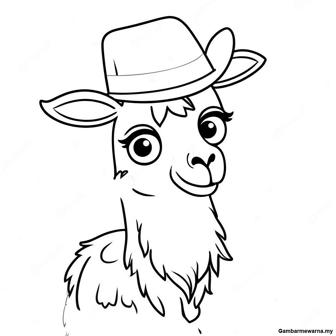 Muat turun PDF Boleh Cetak Halaman Mewarna Llama Comel Dengan Topi