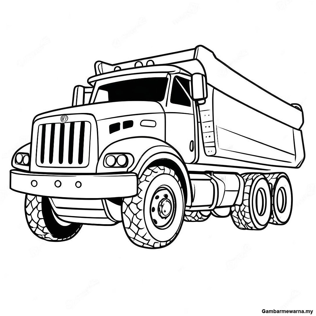 Halaman Mewarna Trak Dump Pembinaan