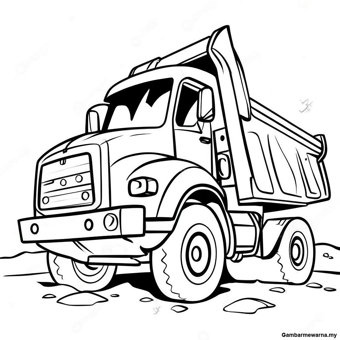 Muat turun PDF Boleh Cetak Halaman Mewarna Lori Buang Di Tapak Pembinaan