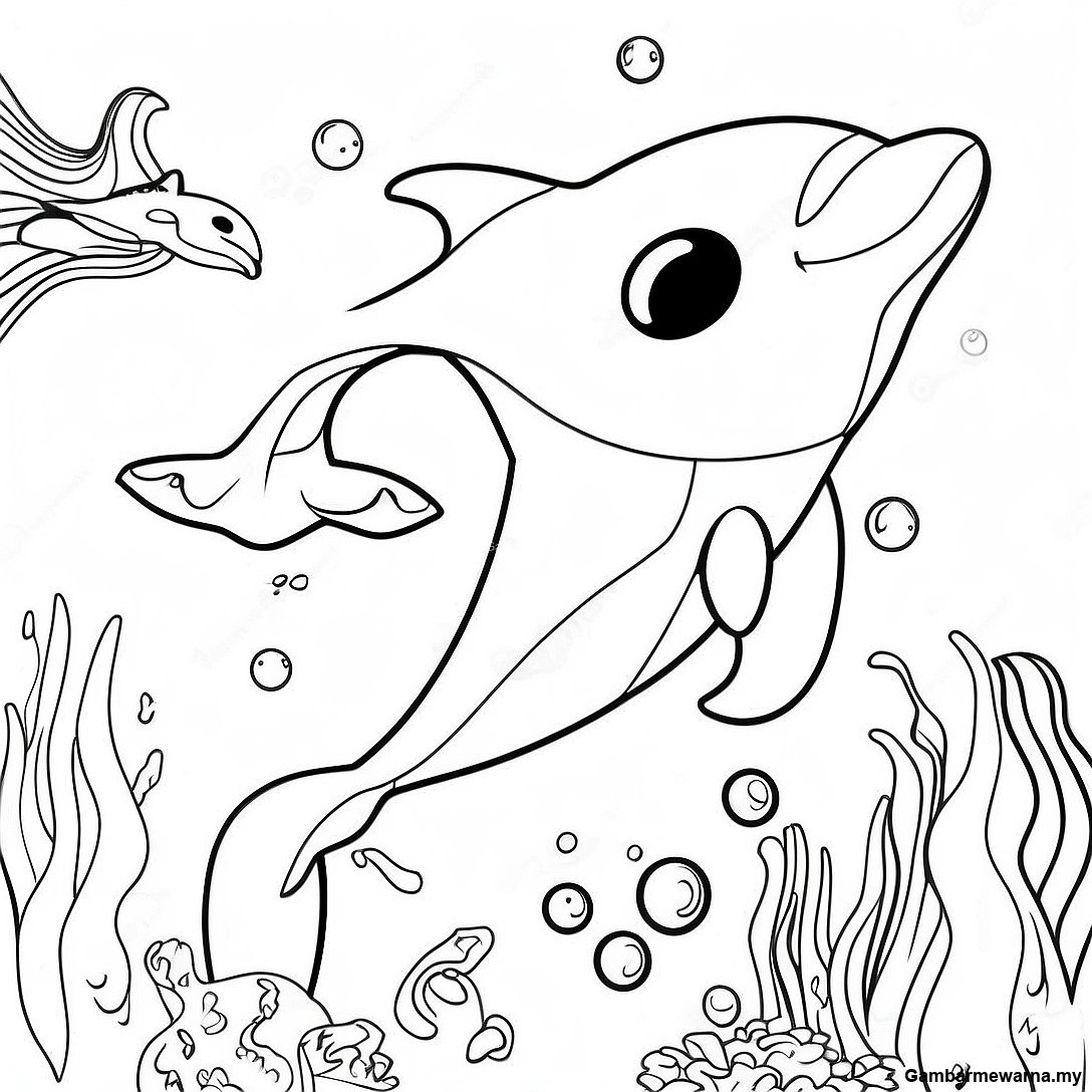 Halaman Mewarna Lumba Lumba Bermain Di Bawah Laut