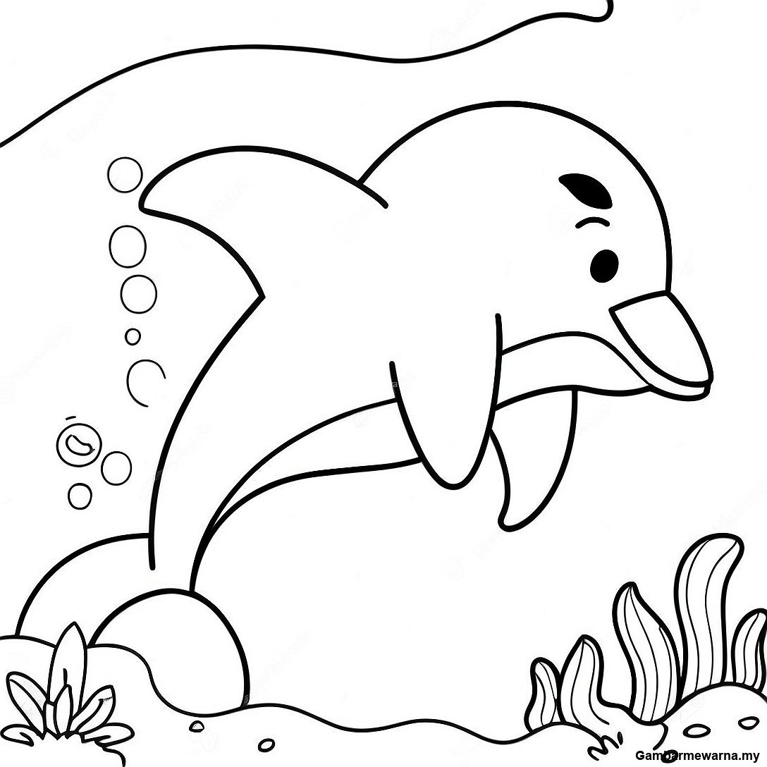 Halaman Mewarna Lumba-Lumba Comel Berenang