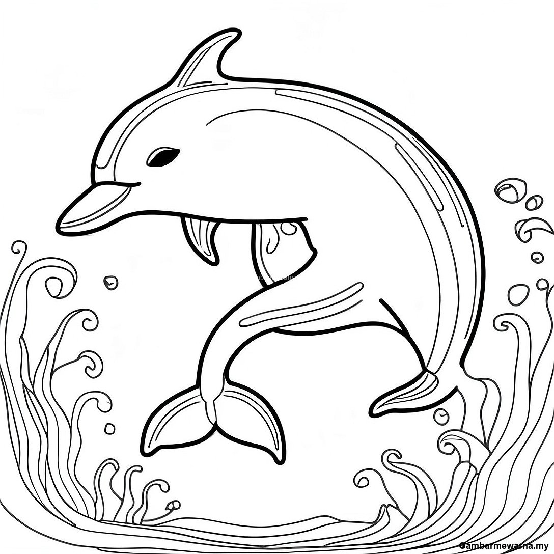 Halaman Mewarna Lumba Lumba Megah Berenang