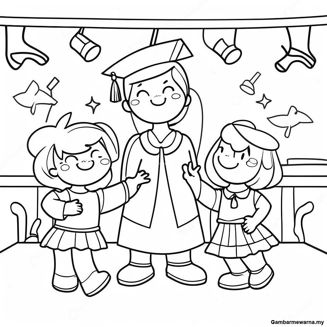 Halaman Mewarna Majlis Graduasi Tadika Yang Ceria