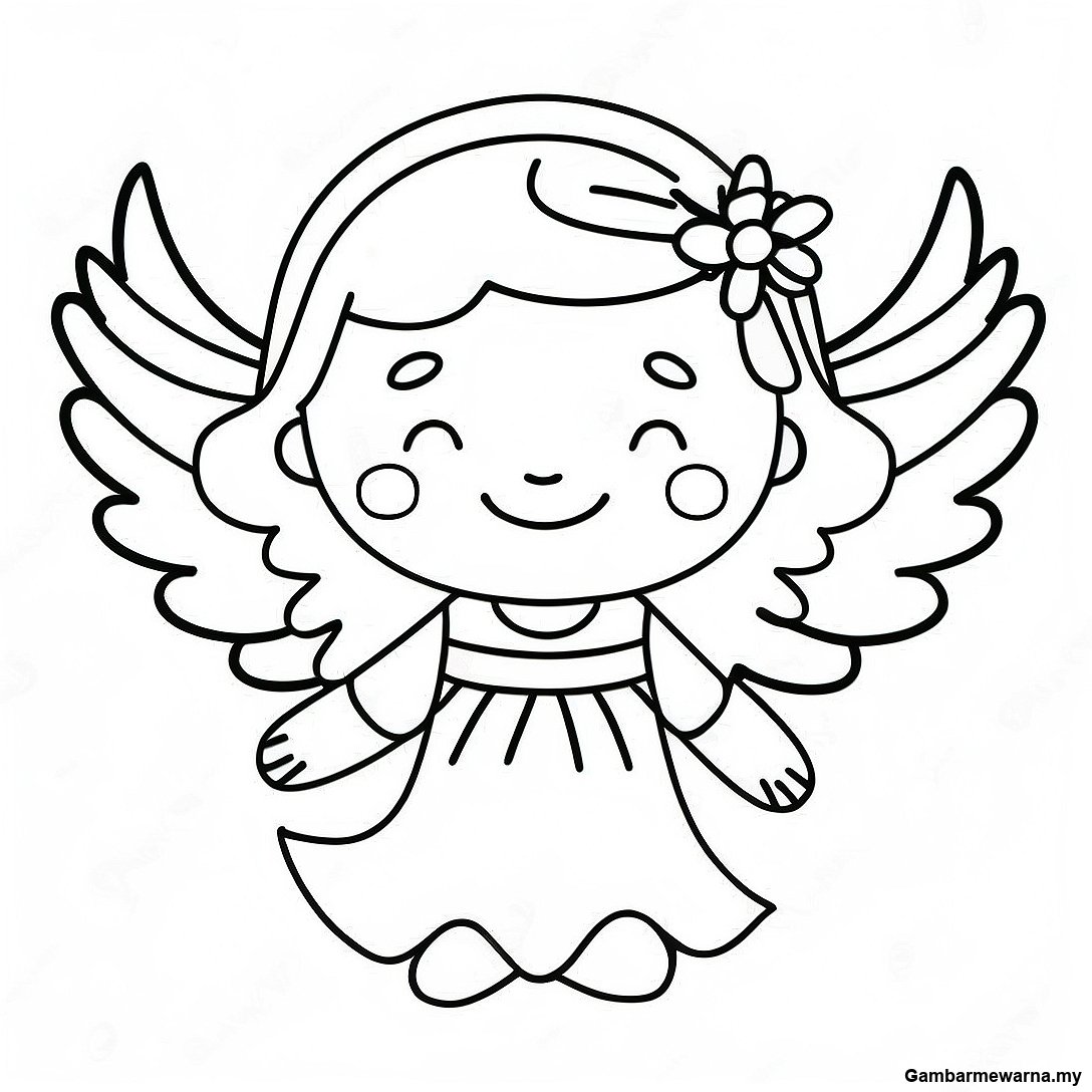 Muat turun PDF Boleh Cetak Halaman Mewarna Malaikat Ceria Dengan Sayap
