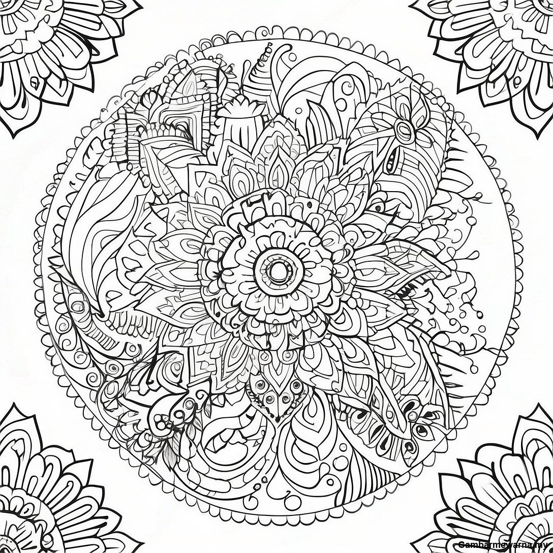 Halaman Mewarna Corak Mandala yang Halus
