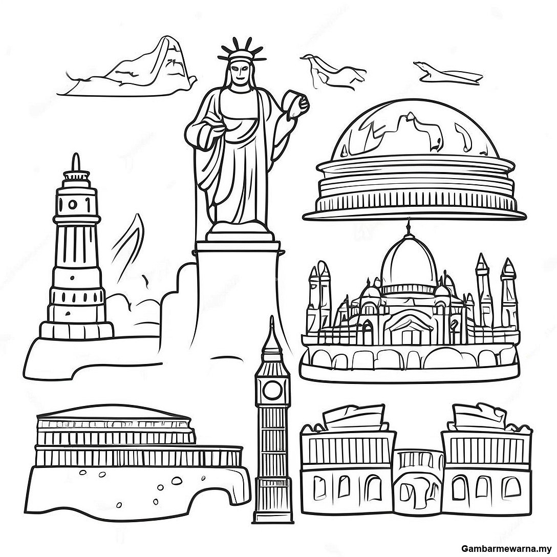 Halaman Mewarna Mercu Tanda Terkenal Negara