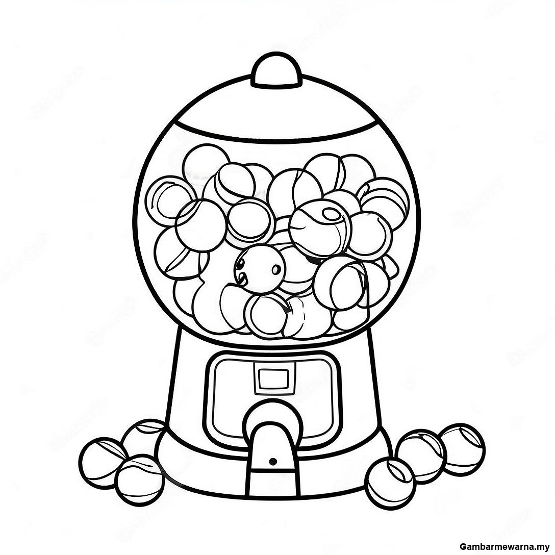 Muat turun PDF Boleh Cetak Halaman Mewarna Mesin Gumball Dengan Kanak-Kanak
