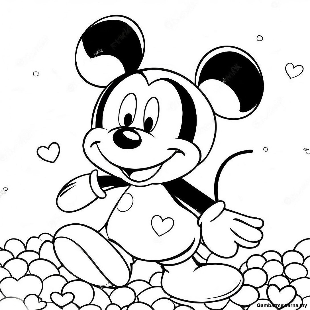 Halaman Mewarna Mickey Mouse Dikelilingi Oleh Hati Cinta 99139 37829