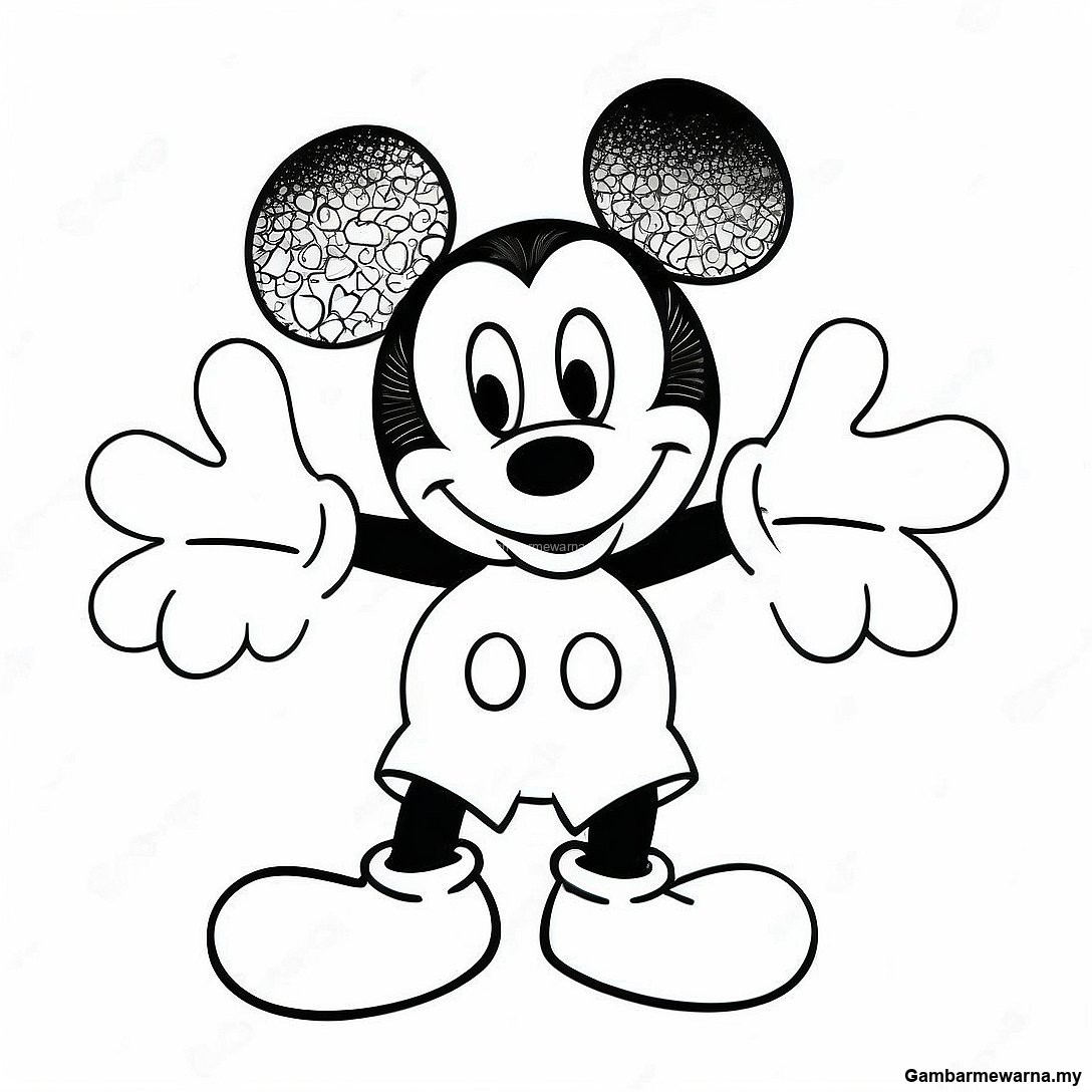 Halaman Mewarna Mickey Mouse Dikelilingi Oleh Hati Cinta