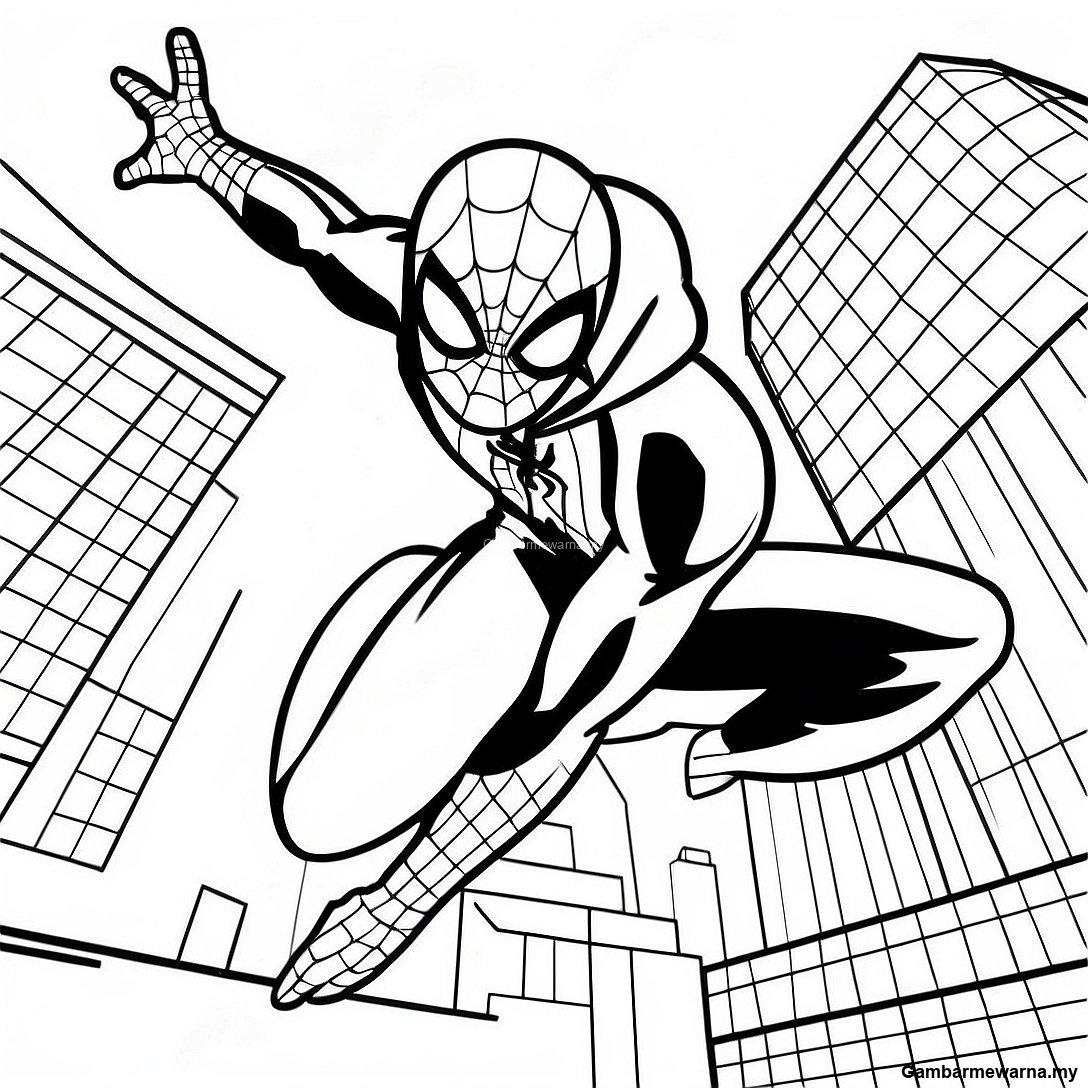 Halaman Mewarna Spider Man Meluncur Melalui Bandar