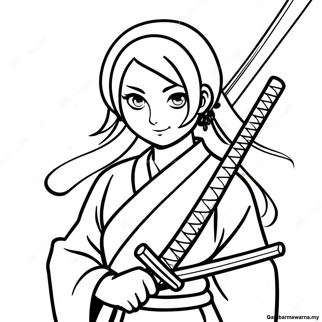 Muat turun PDF Boleh Cetak Halaman Mewarna Mitsuri Dengan Katana