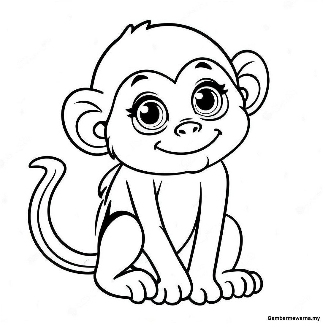 Halaman Mewarna Monyet Bayi Yang Ceria