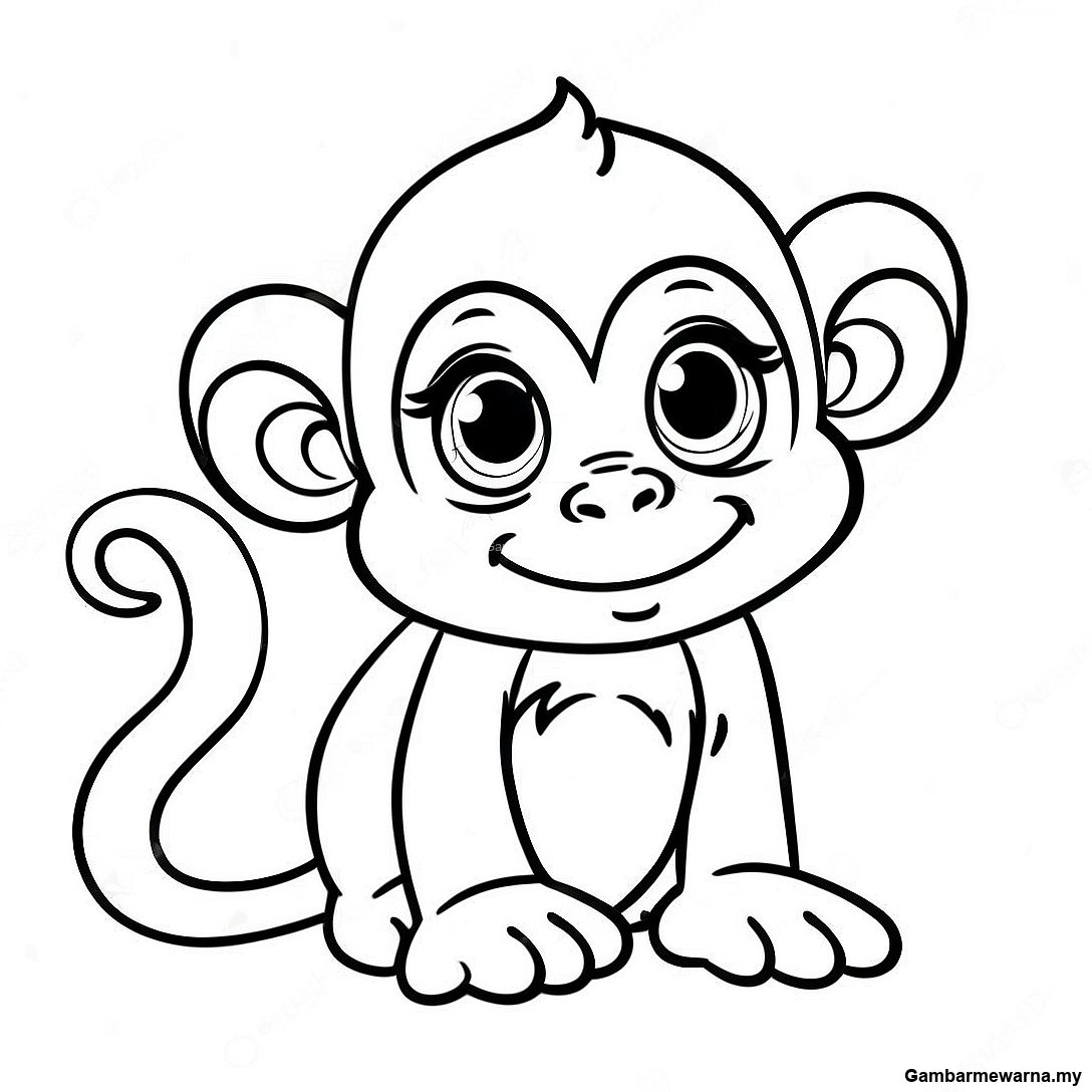 Halaman Mewarna Monyet Bayi Yang Ceria