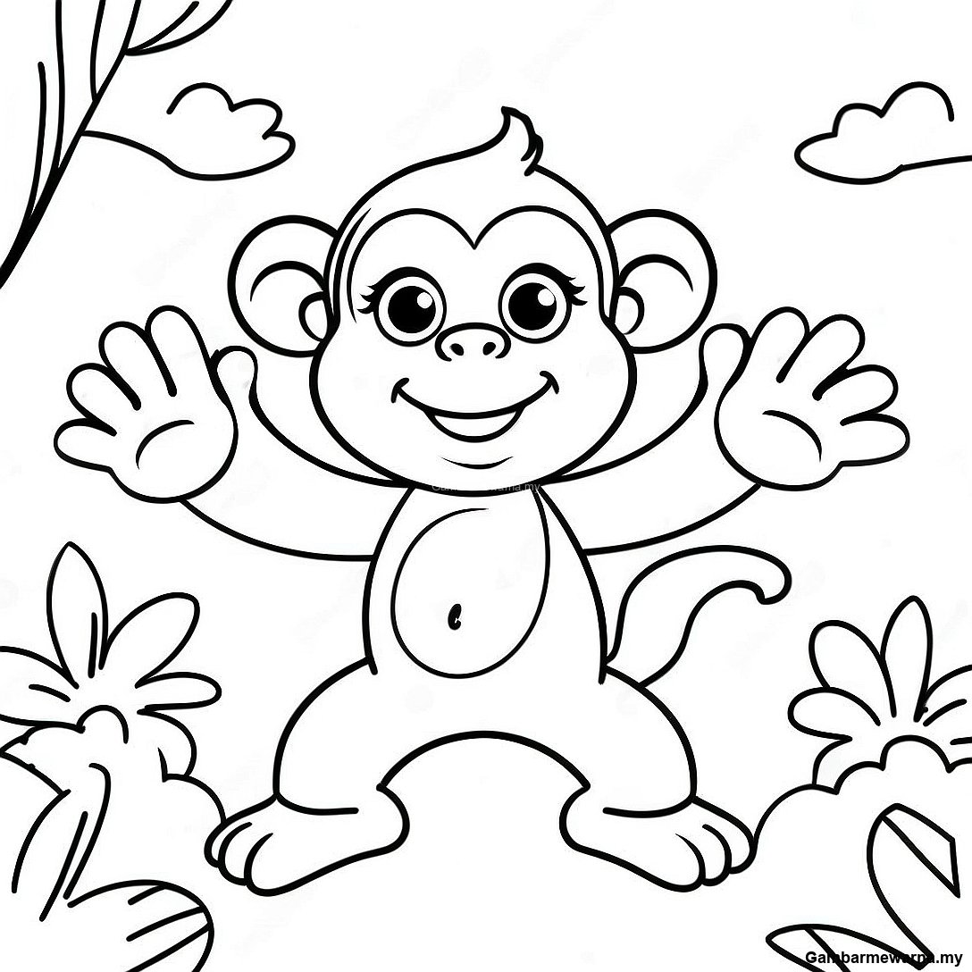 Halaman Mewarna Monyet Kartun Bermain Dengan Kawan