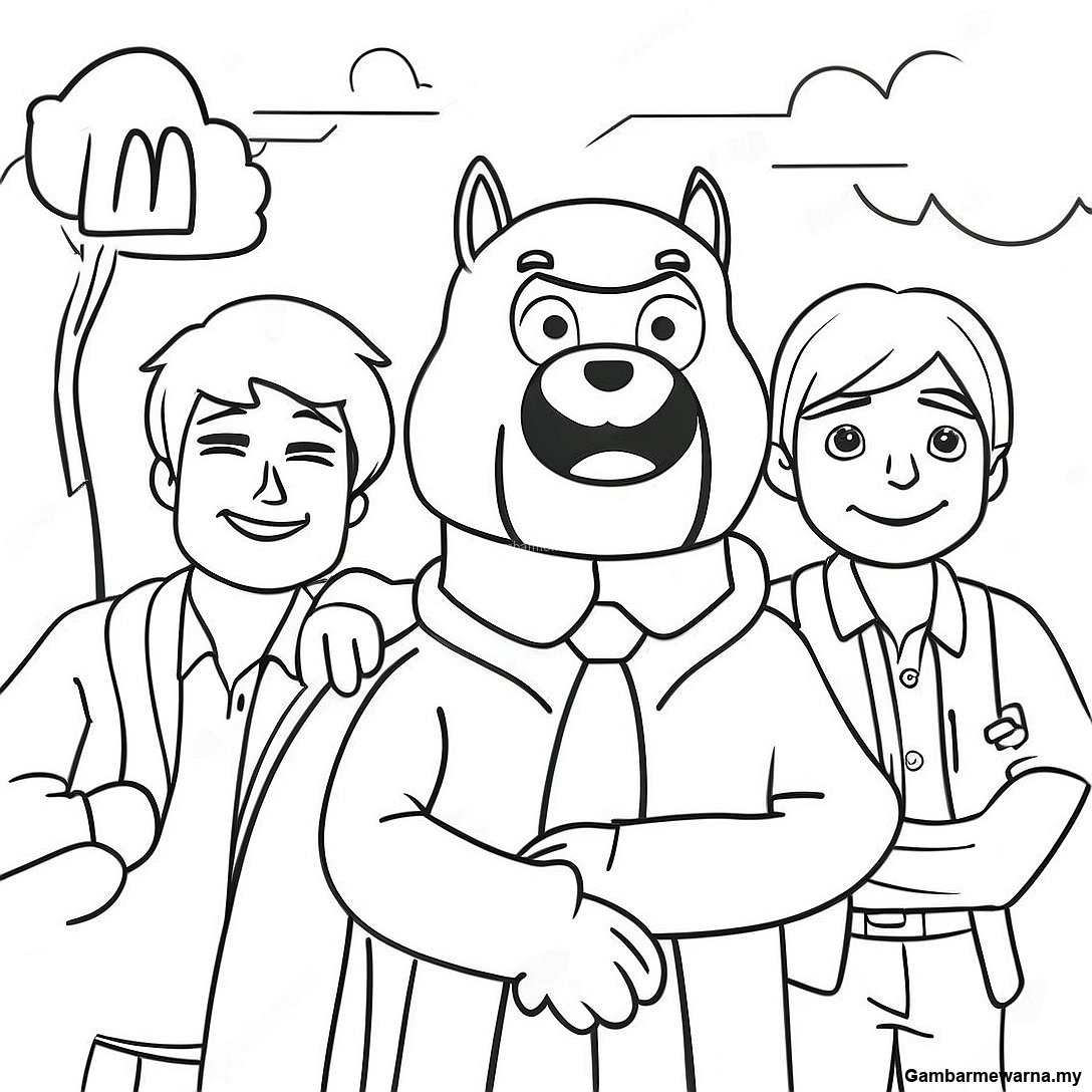 Halaman Mewarna Mr Beast Bersama Kawan Kawan