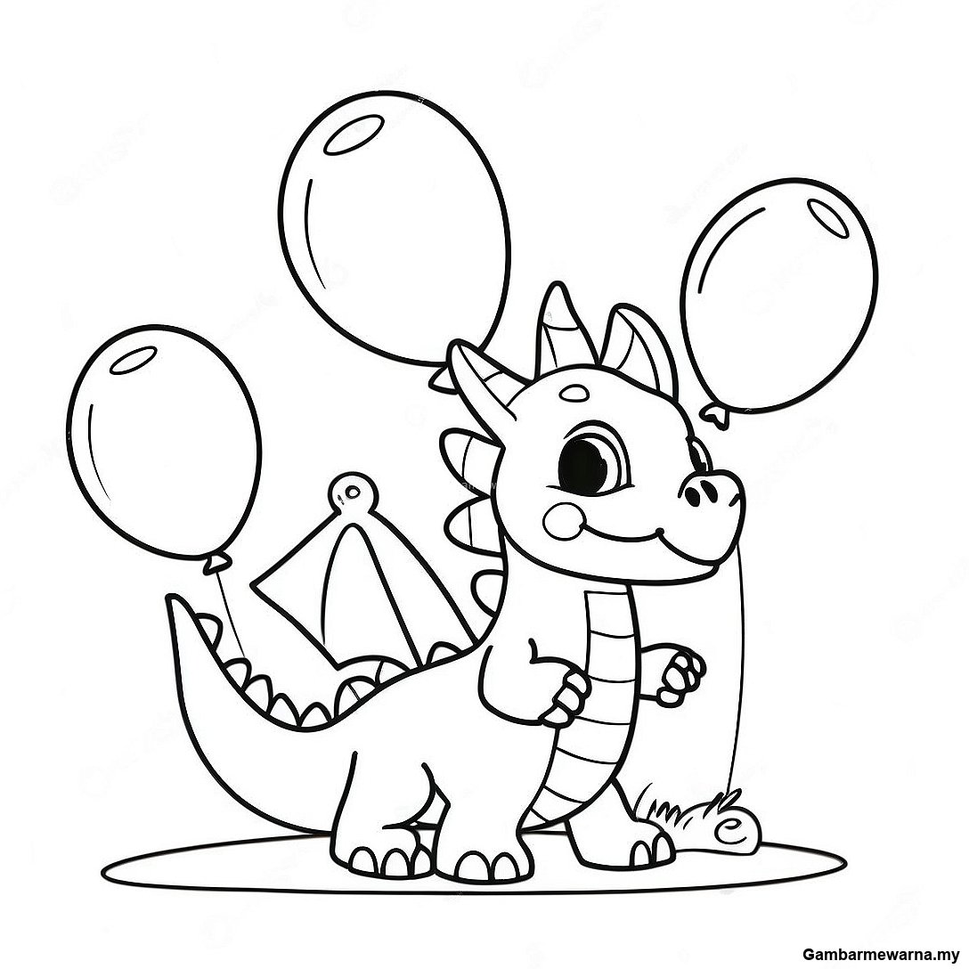 Halaman Mewarna Naga Bermain Dengan Belon 125103 59129