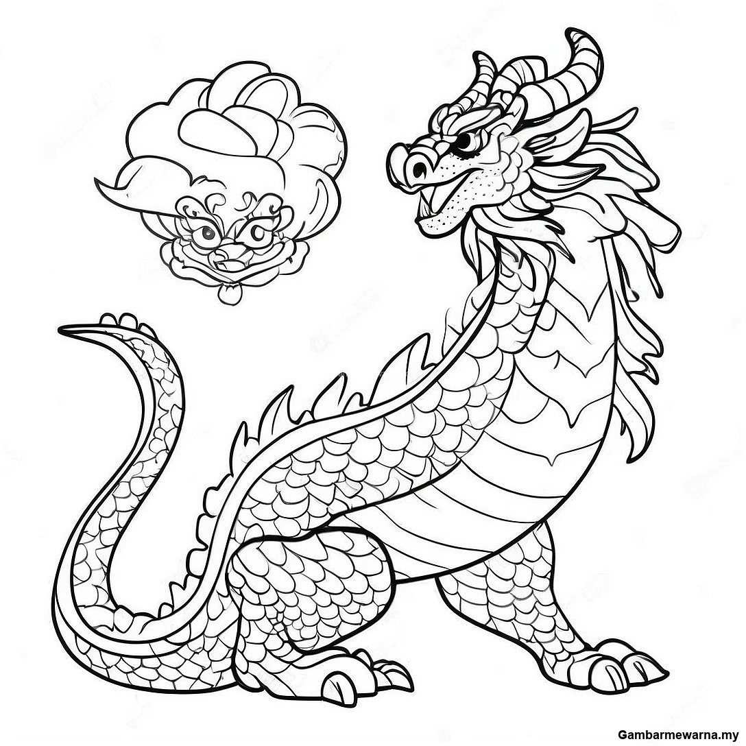 Muat turun PDF Boleh Cetak Halaman Mewarna Naga Cina Yang Megah