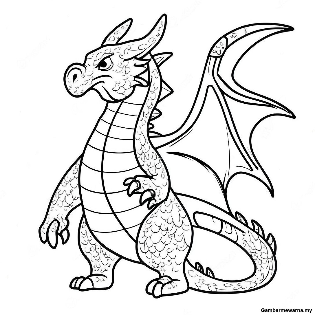 Halaman Mewarna Naga Menakutkan Yang Menghembus Api