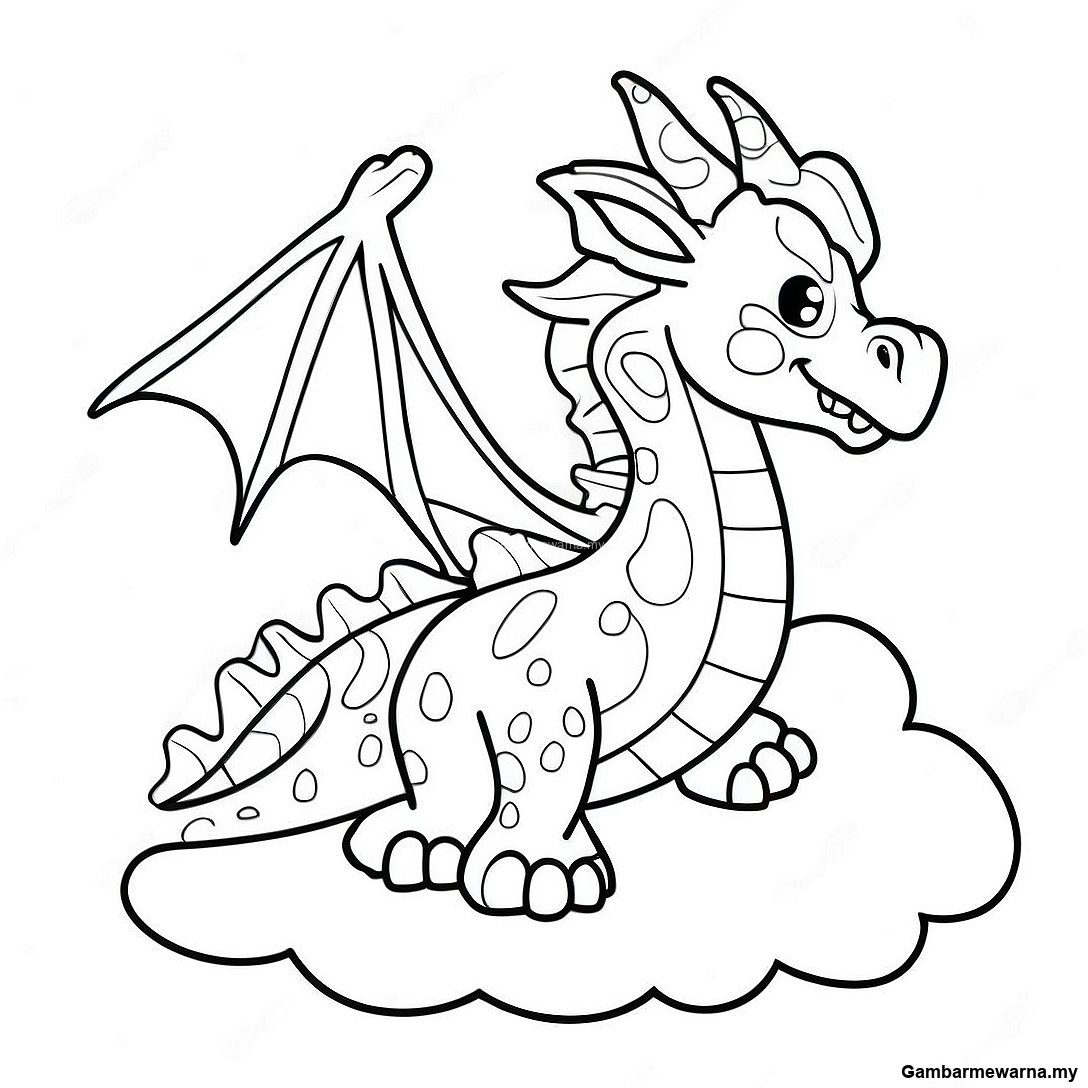 Muat turun PDF Boleh Cetak Halaman Mewarna Naga Mistikal Di Awan