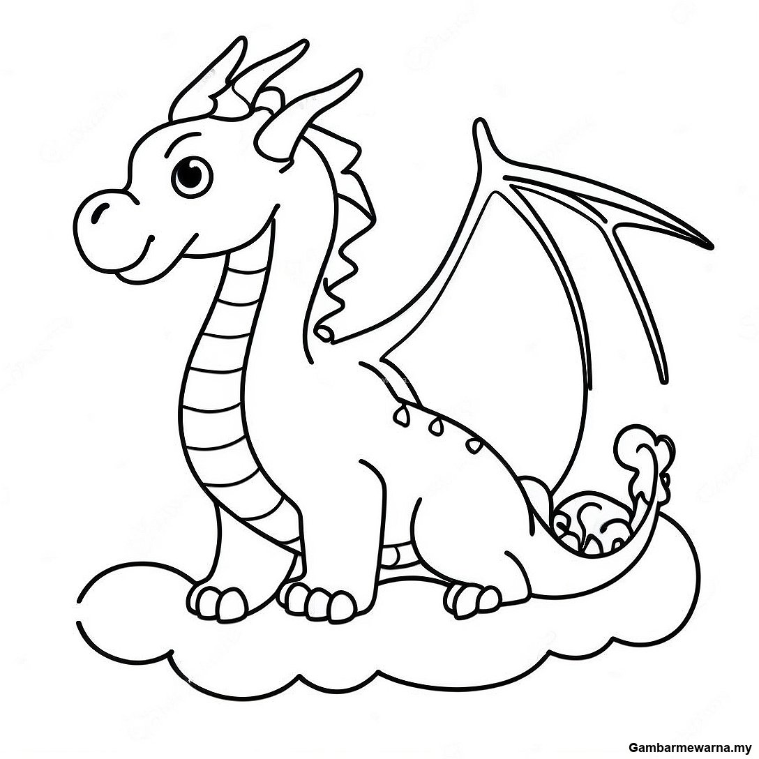 Muat turun PDF Boleh Cetak Halaman Mewarna Naga Mistikal Di Awan