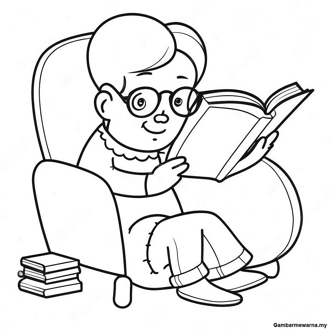 Halaman Mewarna Nana Membaca Buku 115949 51431