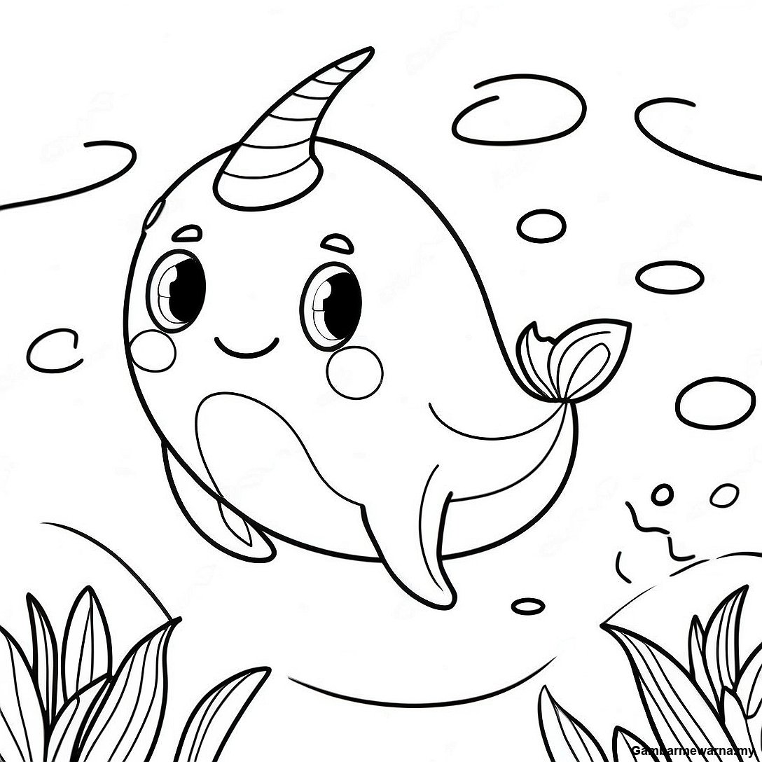 Halaman Mewarna Narwhal Tidak Cukup Yang Comel