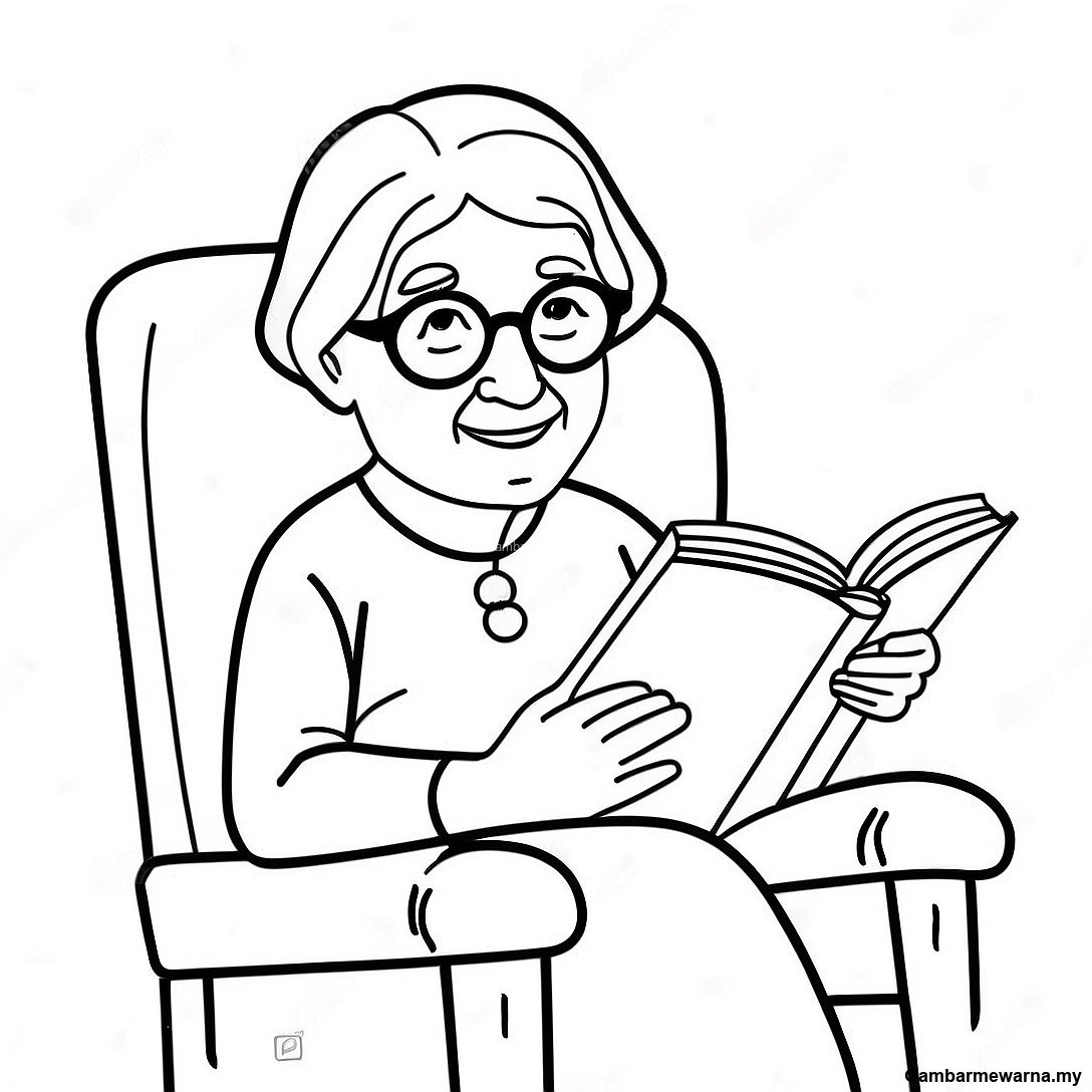 Muat turun PDF Boleh Cetak Halaman Mewarna Nenek Membaca Buku