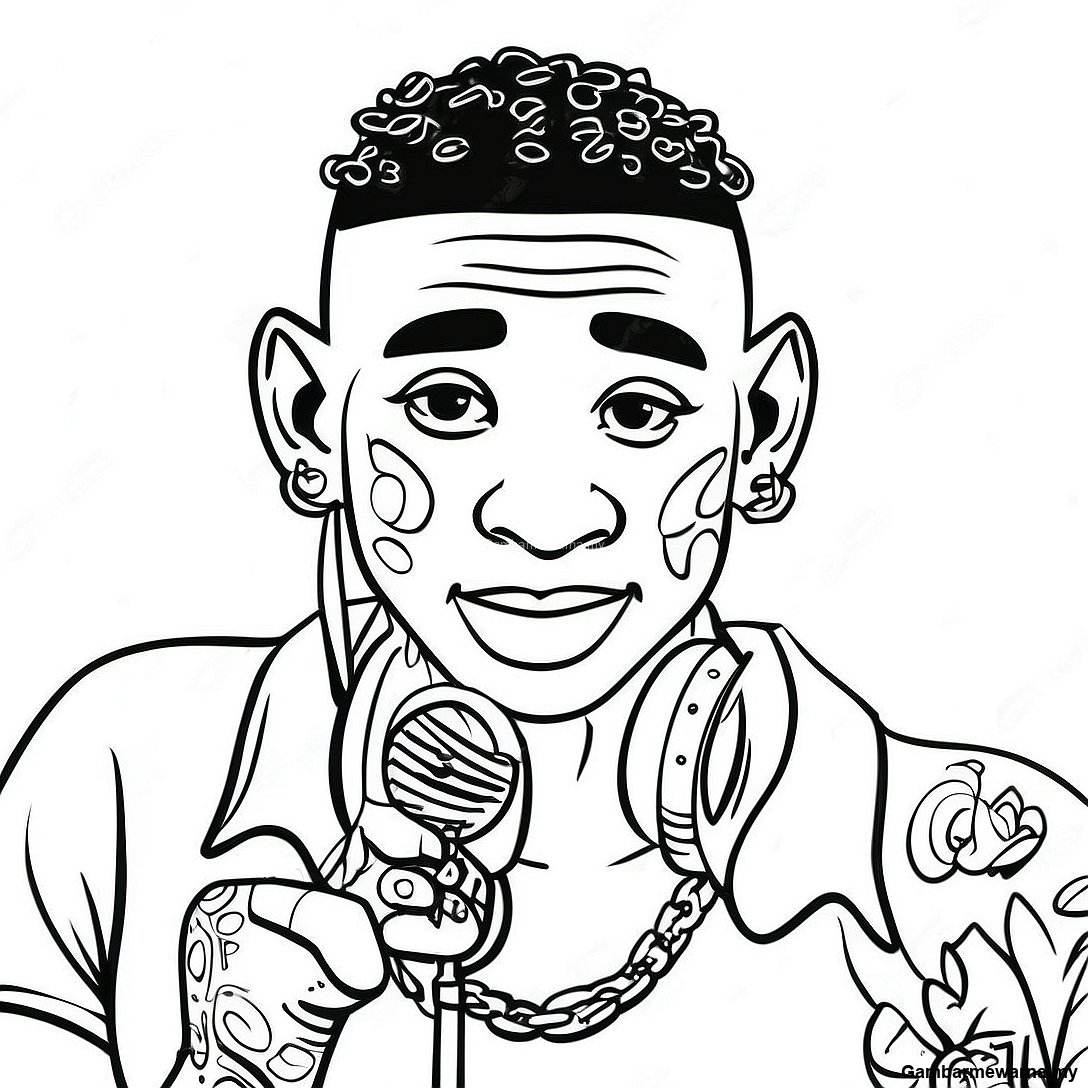 Halaman Mewarna Nle Choppa Dengan Mikrofon 125773 59652
