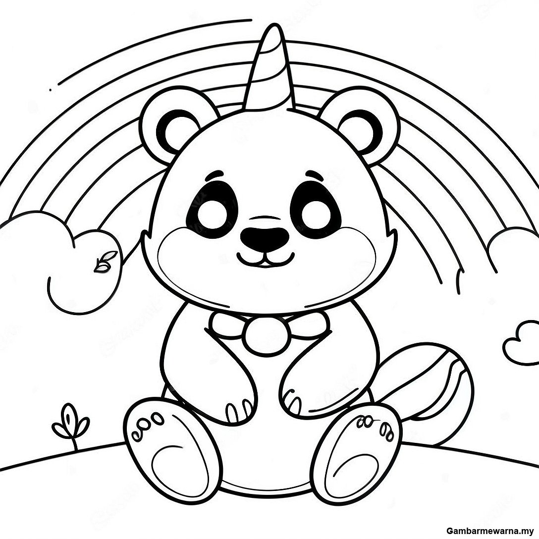 Halaman Mewarna Panda Unicorn Yang Megah Dengan Latar Belakang Pelangi