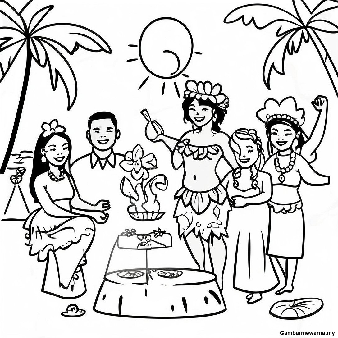 Muat turun PDF Boleh Cetak Halaman Mewarna Parti Luau Berwarna-Warni
