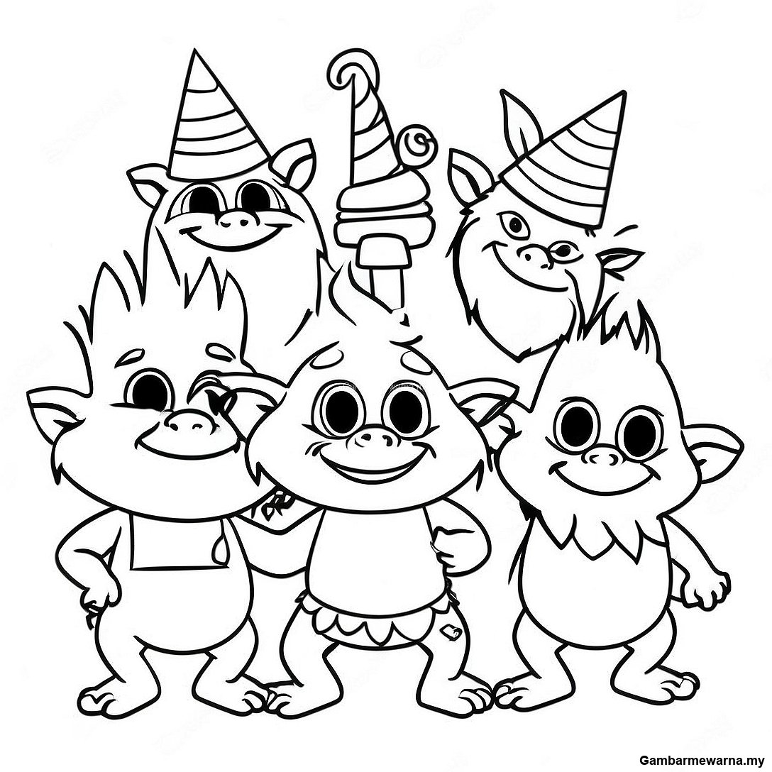 Halaman Mewarna Parti Trolls Berwarna Warni