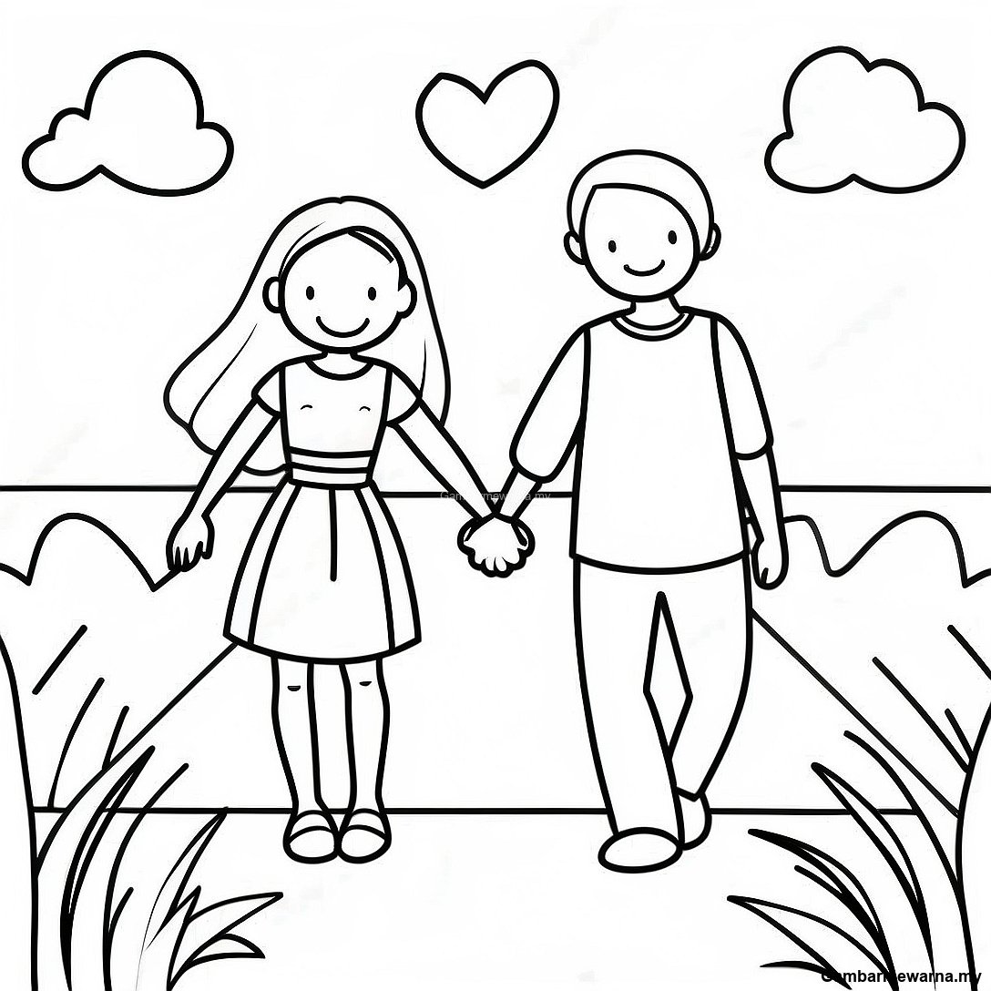 Halaman Mewarna Pasangan Comel Memegang Tangan