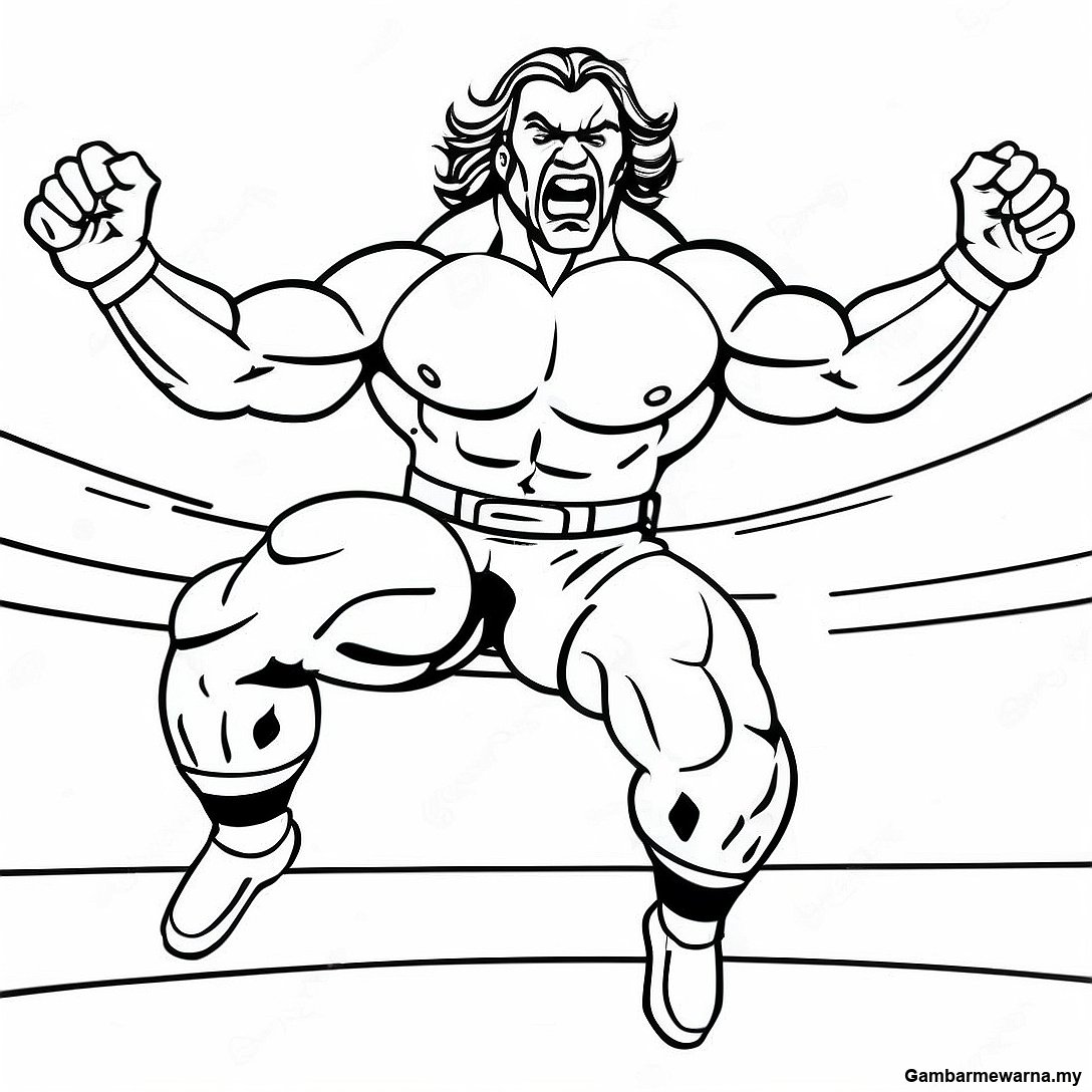 Halaman Mewarna Pegulat Wwe Grayscale Rumit Melompat Ke Atas Lawan
