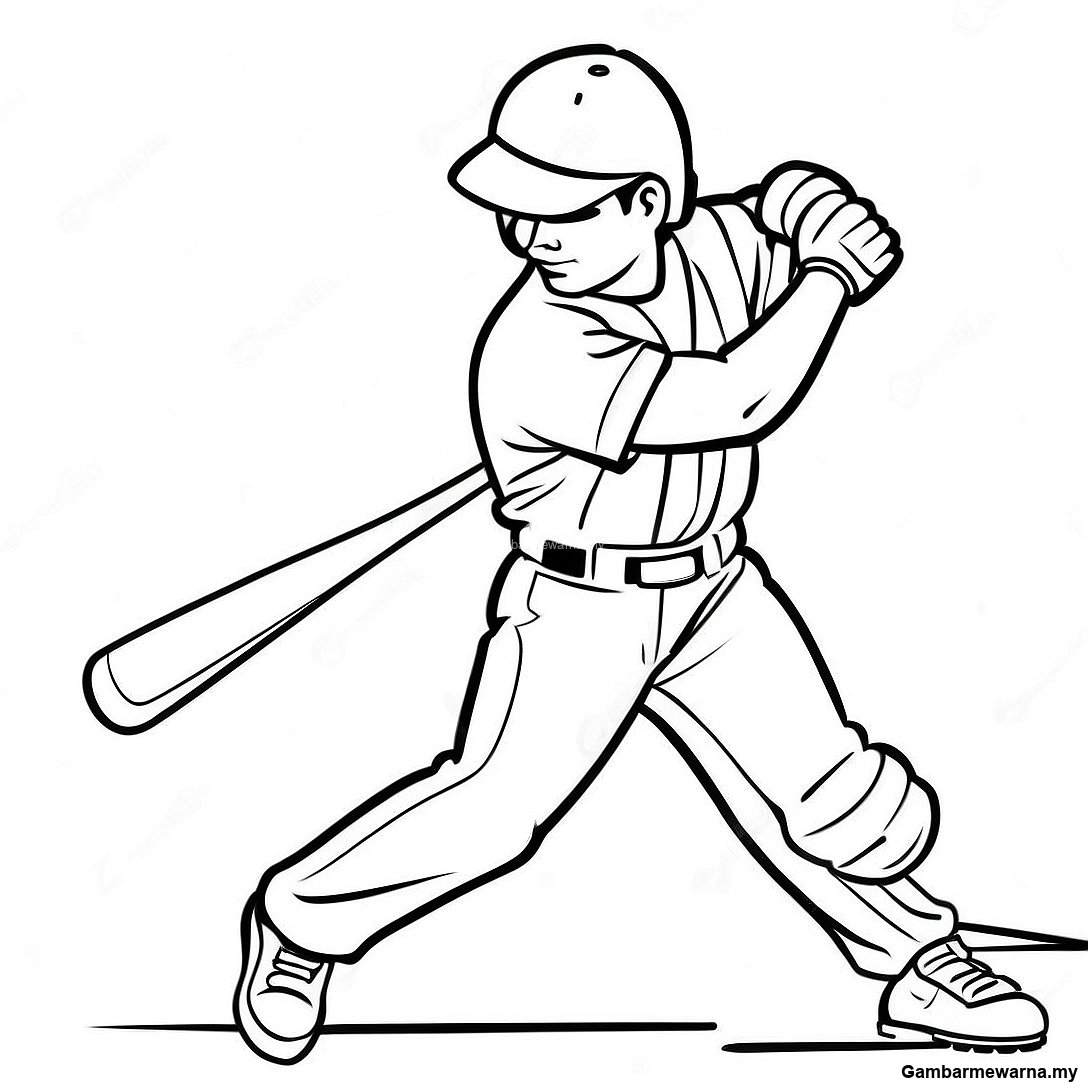 Halaman Mewarna Pemain Baseball Menghayun Bat