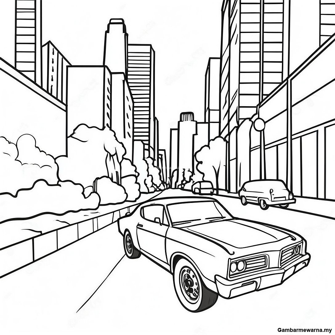 Muat turun PDF Boleh Cetak Halaman Mewarna Pemandangan Bandar Gta