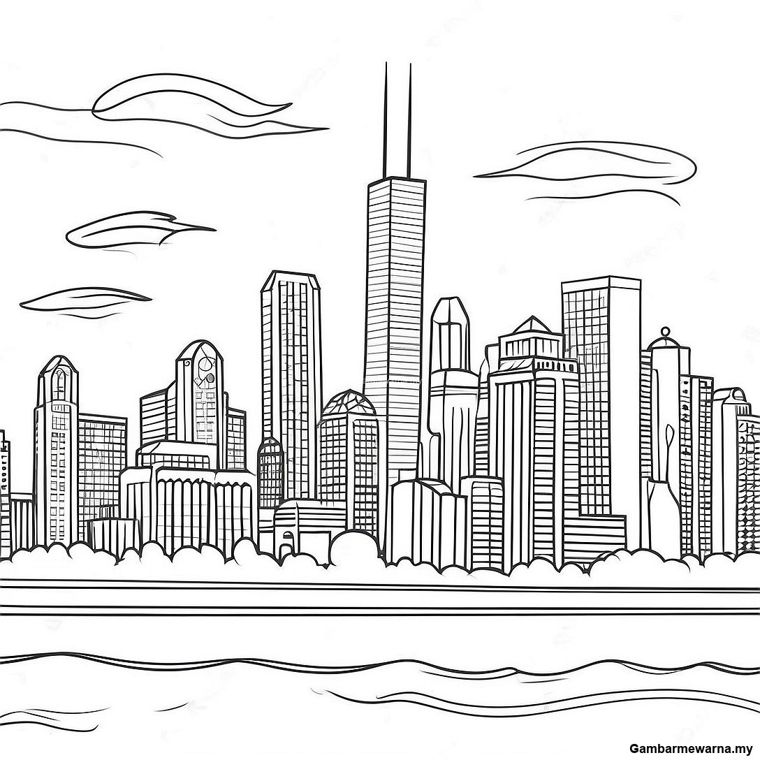 Halaman Mewarna Pemandangan Garis Langit Chicago 117158 52516